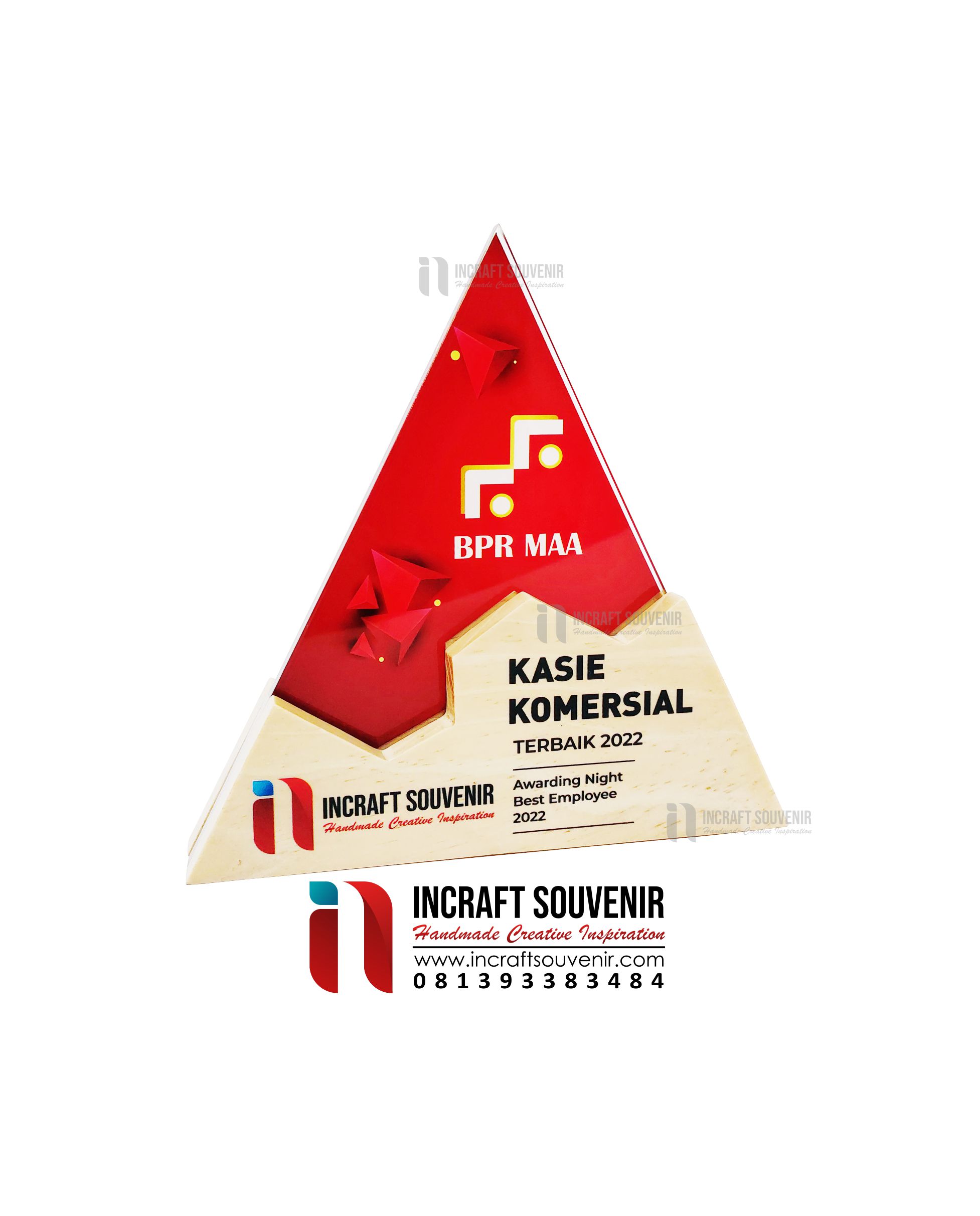 Plakat Akrilik merupakan salah satu produk plakat yang paling banyak dipesan. Plakat Akrilik ini dibuat dari bahan dasar acrylic bening, Proses Pekerjaan membentuk dan memotong plakat acrylic ini dengan menggunakan mesin laser sehingga hasil lebih presisi, yang kemudian di finishing oleh tenaga-tenaga ahli yang sudah berpengalaman. Plakat Akrilik dapat di variasi dengan bahan plat kuningan, stainless, almunium print, print flatbed, grafir laser.