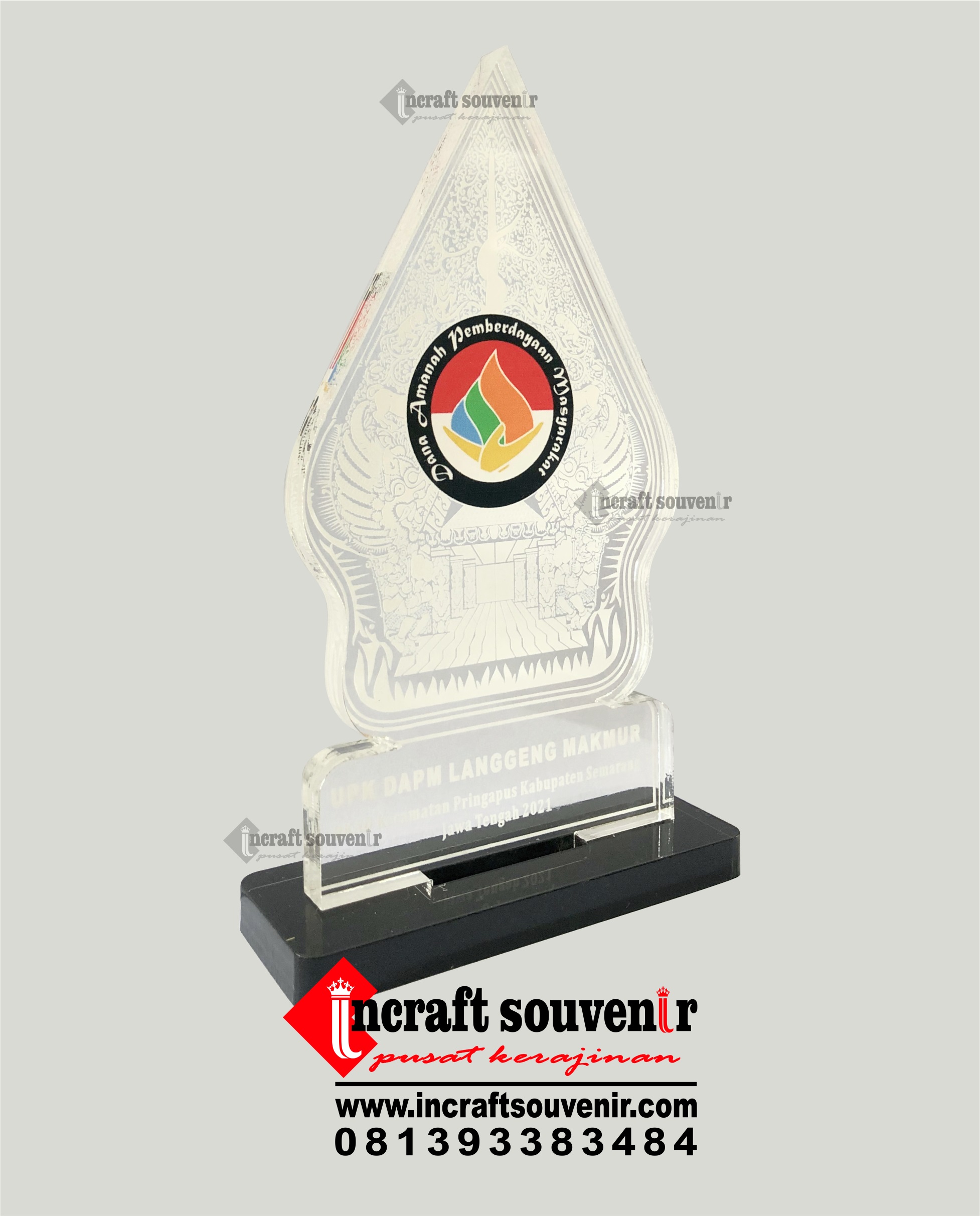 Plakat Akrilik merupakan salah satu produk plakat yang paling banyak dipesan. Plakat Akrilik ini dibuat dari bahan dasar acrylic bening, Proses Pekerjaan membentuk dan memotong plakat acrylic ini dengan menggunakan mesin laser sehingga hasil lebih presisi, yang kemudian di finishing oleh tenaga-tenaga ahli yang sudah berpengalaman. Plakat Akrilik dapat di variasi dengan bahan plat kuningan, stainless, almunium print, print flatbed, grafir laser.