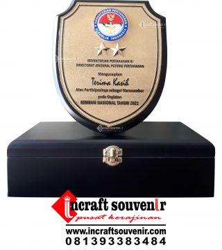 Plakat kayu merupakan produk plakat yang eksklusif dan elegan. Plakat kayu dengan sentuhan kombinasi plat kuningan menjadikan plakat kayu banyak sekali diminati baik instansi pemerintah, BUMN, Universitas dan juga perusahaan – perusahaan swasta. Produk plakat kayu ini terkenal dengan nilai kemewahanya dengan kombinasi kuningan croom emas dan tentunya dilengkapi dengan kotak bludru / batik menambah nilai eksklusufitas plakat kayuini. Harga plakat kayu sendiri bervariasi tergantung dari kesulitan juga ukuranya.