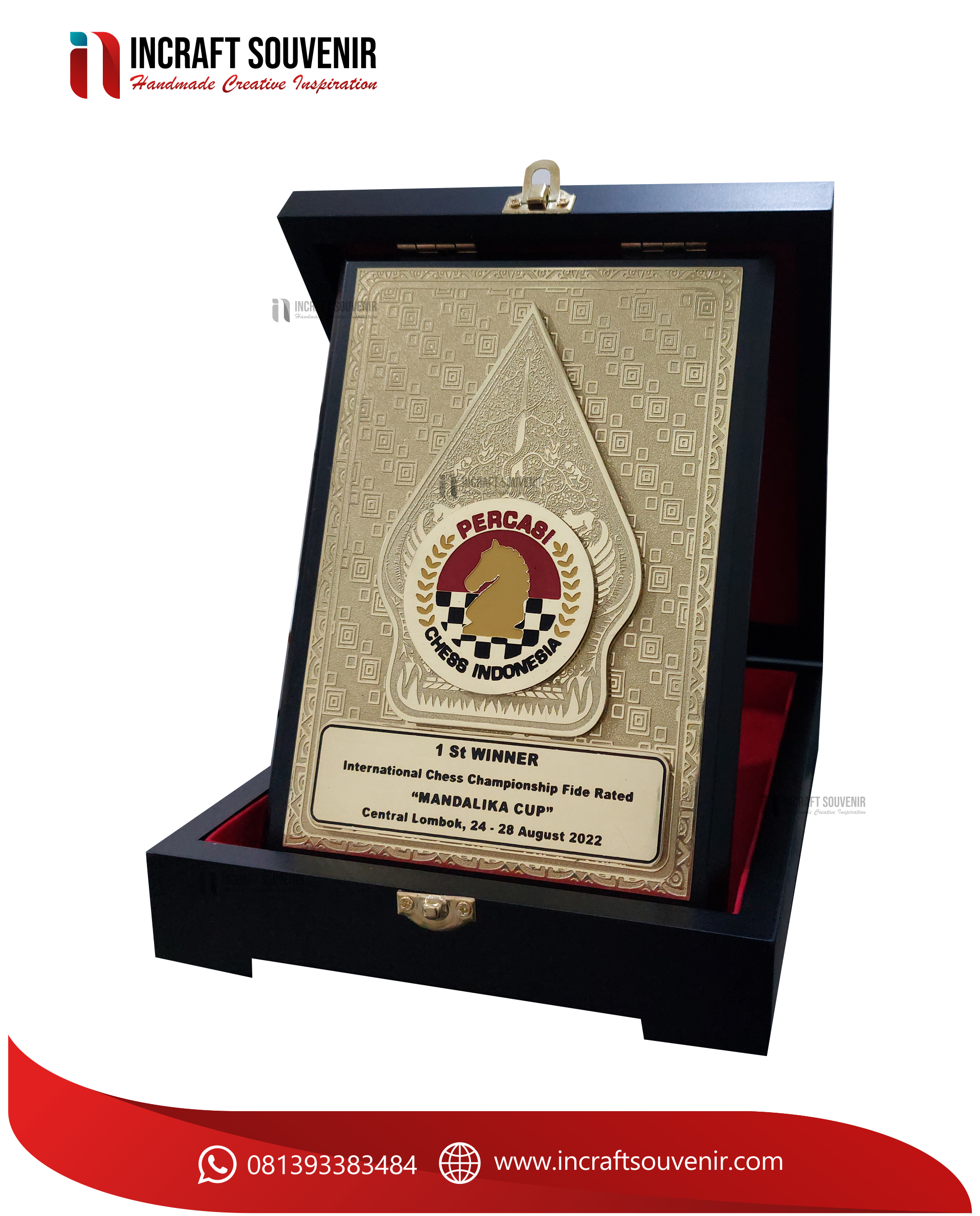 Plakat kayu merupakan produk plakat yang eksklusif dan elegan. Plakat kayu dengan sentuhan kombinasi plat kuningan menjadikan plakat kayu banyak sekali diminati baik instansi pemerintah, BUMN, Universitas dan juga perusahaan – perusahaan swasta. Produk plakat kayu ini terkenal dengan nilai kemewahanya dengan kombinasi kuningan