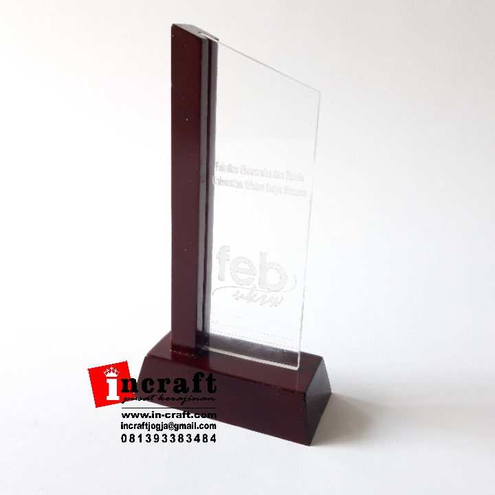 Plakat Akrilik merupakan salah satu produk plakat yang paling banyak dipesan. Plakat Akrilik ini dibuat dari bahan dasar acrylic bening, Proses Pekerjaan membentuk dan memotong plakat acrylic ini dengan menggunakan mesin laser sehingga hasil lebih presisi, yang kemudian di finishing oleh tenaga-tenaga ahli yang sudah berpengalaman. Plakat Akrilik dapat di variasi dengan bahan plat kuningan, stainless, almunium print, print flatbed, grafir laser.