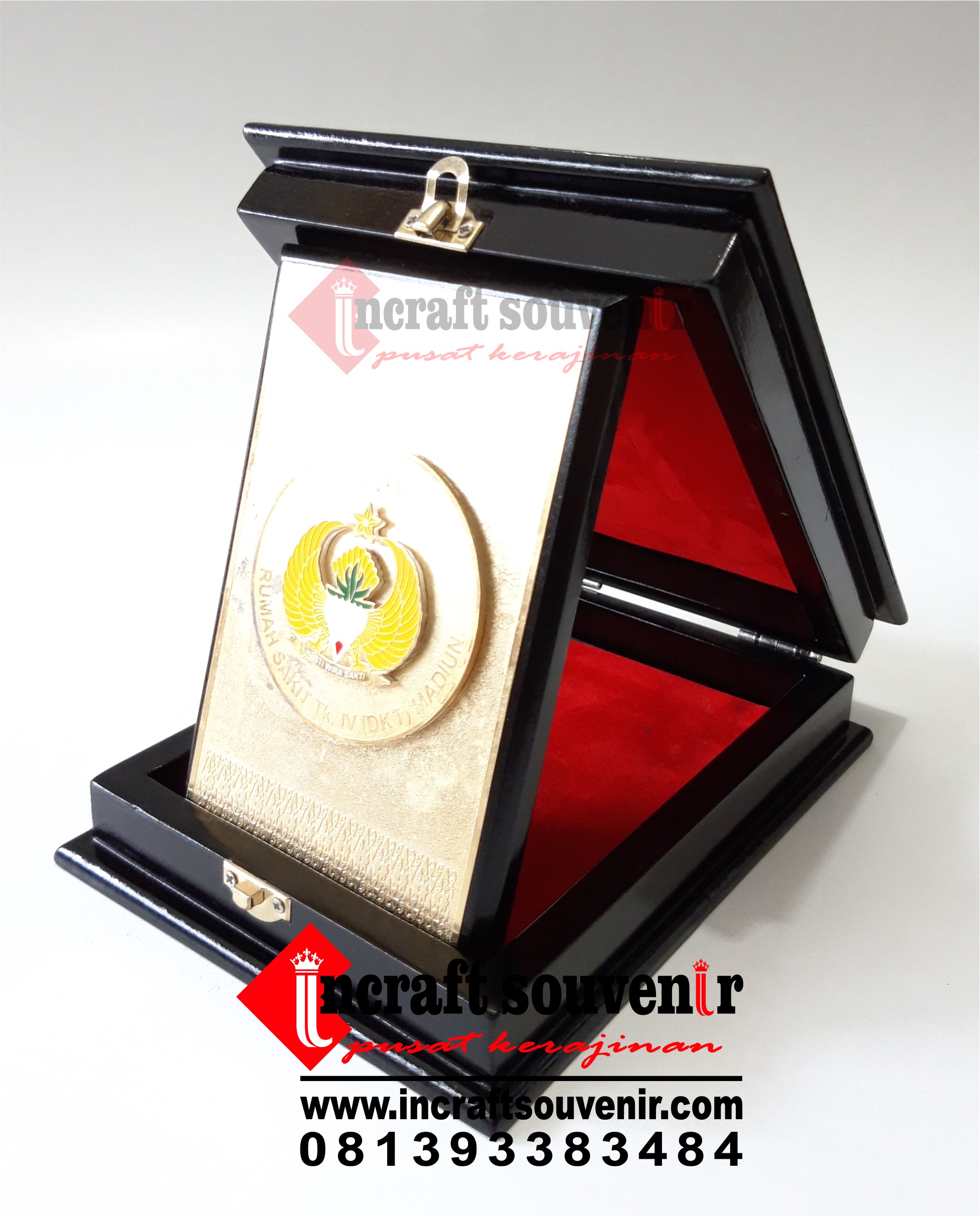 Plakat kayu merupakan produk plakat yang eksklusif dan elegan. Plakat kayu dengan kombinasi variasi logam kuningan menjadikan plakat kayu banyak sekali diminati baik instansi pemerintah, BUMN, Universitas dan juga perusahaan – perusahaan swasta. Produk plakat kayu ini terkenal dengan nilai kemewahanya dengan kombinasi kuningan croom emas dan tentunya dilengkapi dengan kotak bludru / batik menambah nilai eksklusufitas plakat kayuini. Harga plakat kayu sendiri bervariasi tergantung dari kesulitan juga ukuranya.