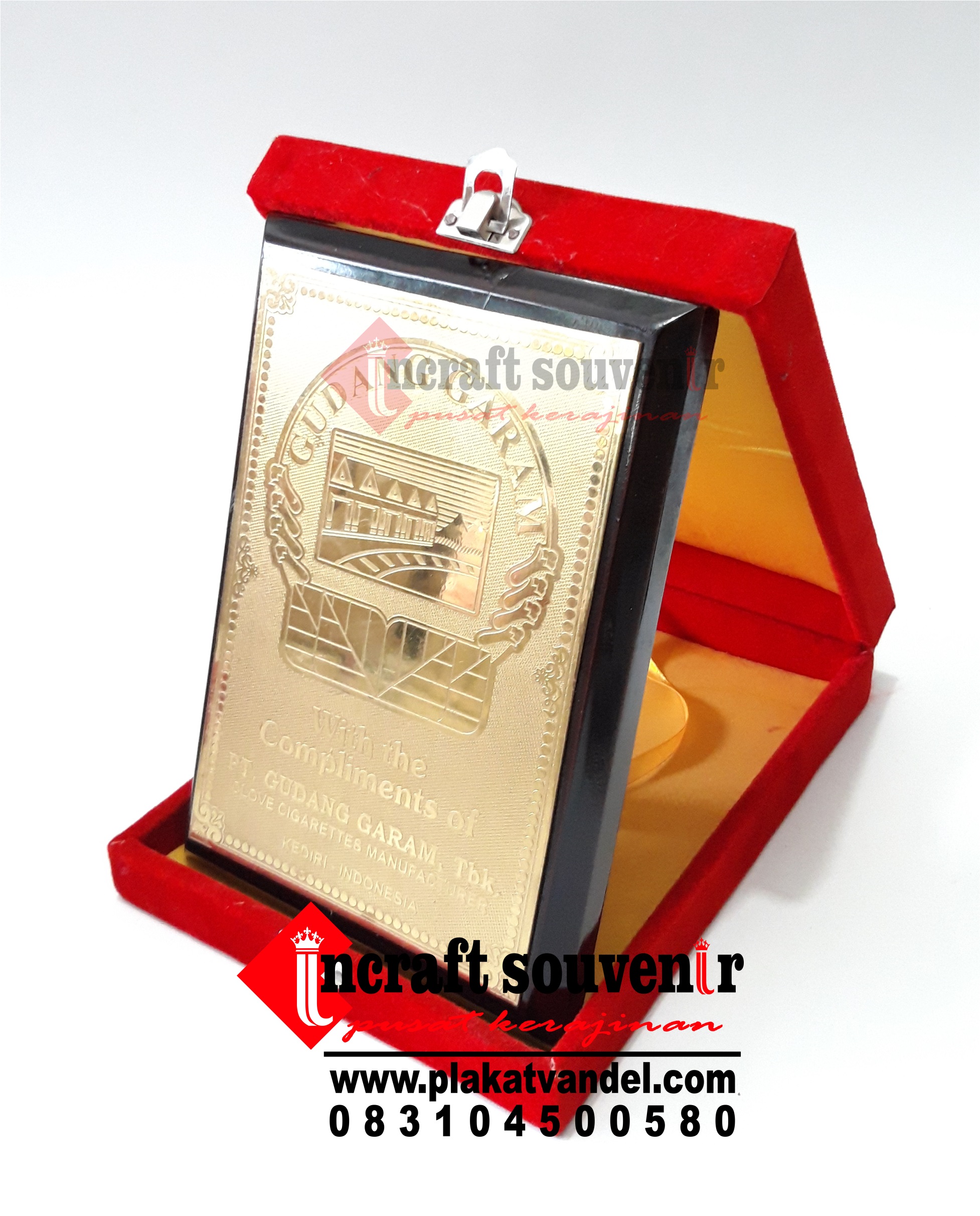 Plakat kayu merupakan produk plakat yang eksklusif dan elegan. Plakat kayu dengan kombinasi variasi logam kuningan menjadikan plakat kayu banyak sekali diminati baik instansi pemerintah, BUMN, Universitas dan juga perusahaan – perusahaan swasta. Produk plakat kayu ini terkenal dengan nilai kemewahanya dengan kombinasi kuningan croom emas dan tentunya dilengkapi dengan kotak bludru / batik menambah nilai eksklusufitas plakat kayuini. Harga plakat kayu sendiri bervariasi tergantung dari kesulitan juga ukuranya.