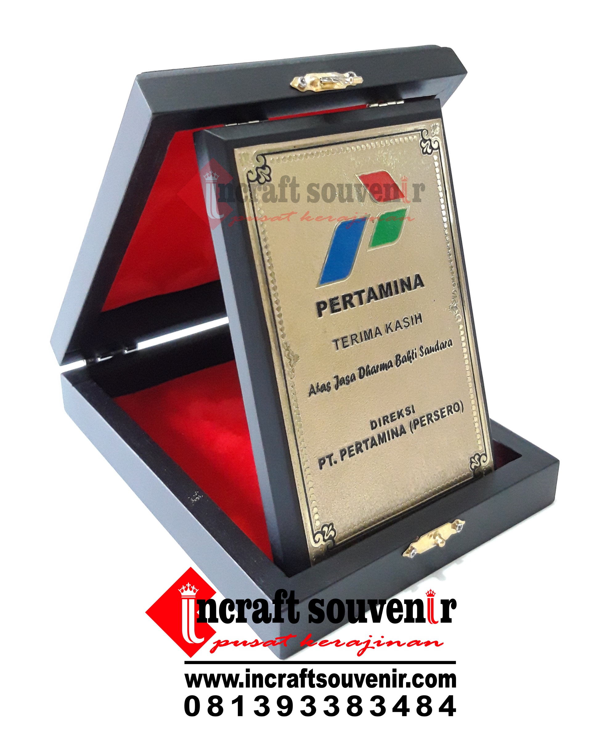 Plakat kayu merupakan produk plakat yang eksklusif dan elegan. Plakat kayu dengan kombinasi variasi logam kuningan menjadikan plakat kayu banyak sekali diminati baik instansi pemerintah, BUMN, Universitas dan juga perusahaan – perusahaan swasta. Produk plakat kayu ini terkenal dengan nilai kemewahanya dengan kombinasi kuningan croom emas dan tentunya dilengkapi dengan kotak bludru / batik menambah nilai eksklusufitas plakat kayuini. Harga plakat kayu sendiri bervariasi tergantung dari kesulitan juga ukuranya.