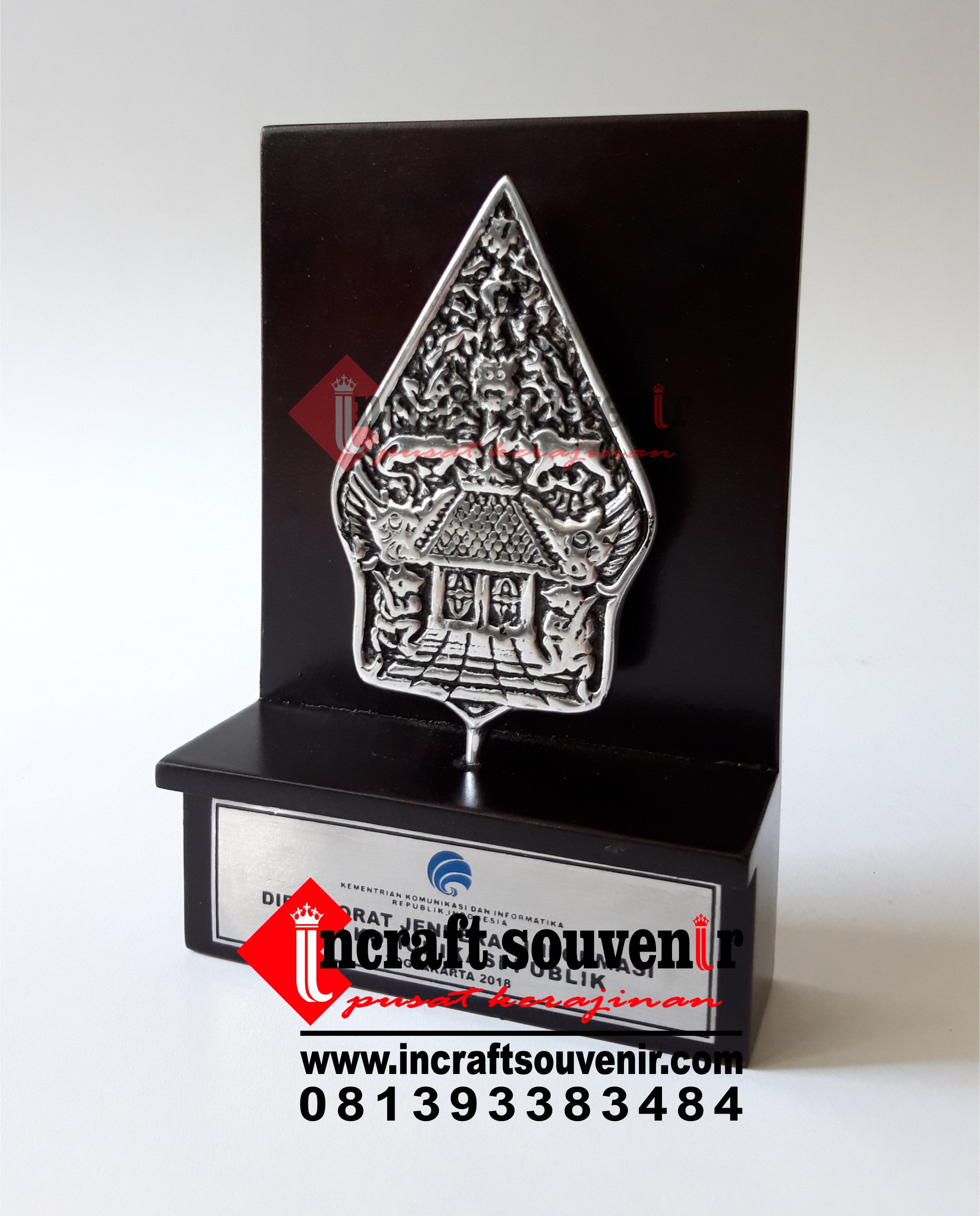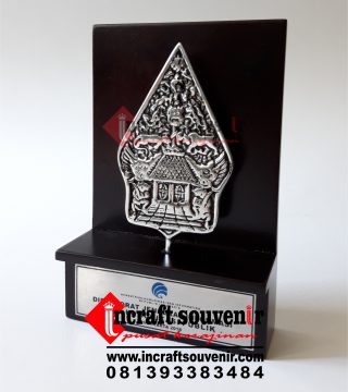 Plakat Wayang merupakan produk plakat yang eksklusif dan elegan. Plakat Wayang dengan kombinasi variasi logam menjadikan Plakat Wayang banyak sekali diminati baik instansi pemerintah, BUMN, Universitas dan juga perusahaan – perusahaan swasta. Produk Plakat Wayang ini terkenal dengan nilai kemewahanya dengan kombinasi dan dilengkapi dengan kotak bludru / batik menambah nilai eksklusufitas Plakat Wayang ini. Harga Plakat Wayang sendiri bervariasi tergantung dari kesulitan juga ukuranya.