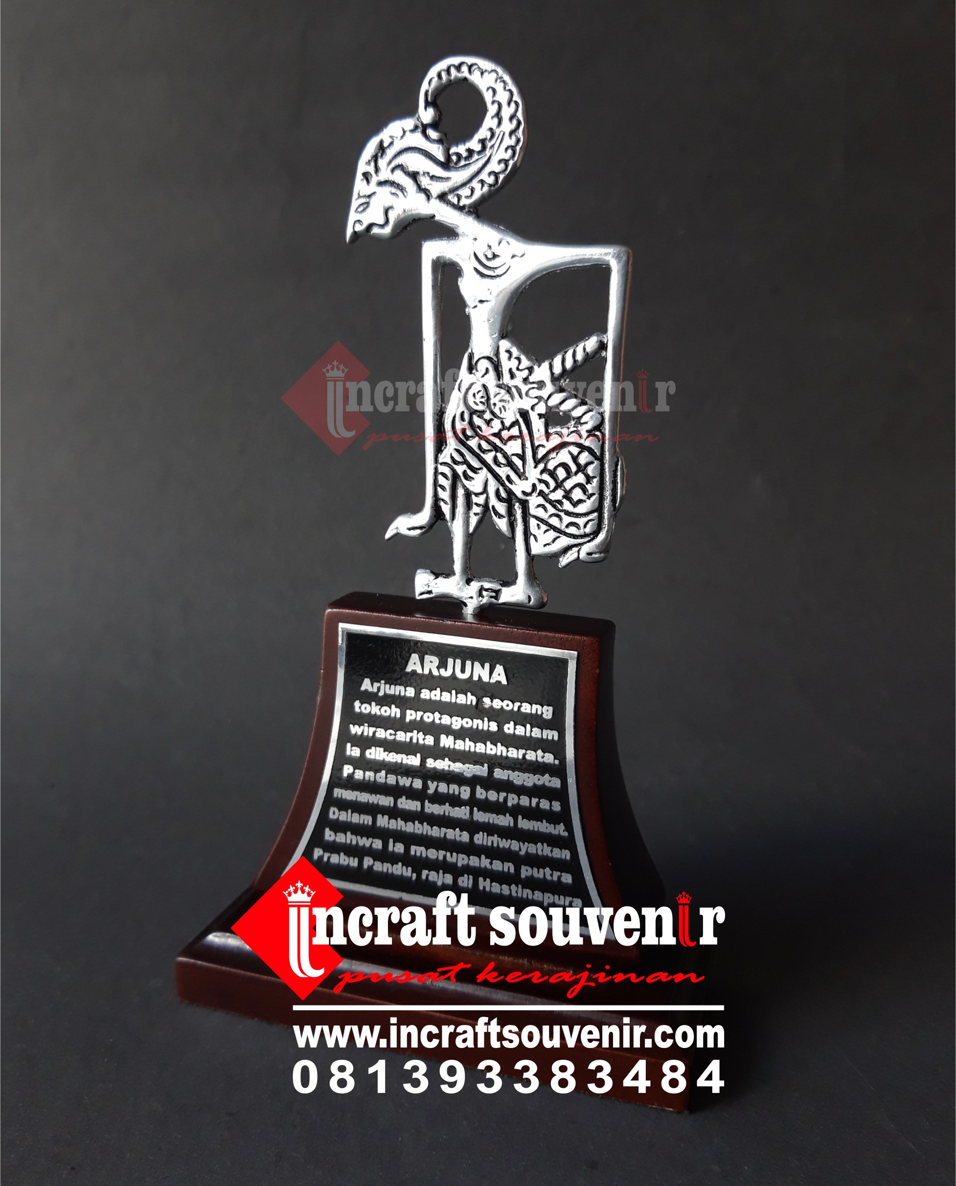 Plakat Wayang merupakan produk plakat yang eksklusif dan elegan. Plakat Wayang dengan kombinasi variasi logam menjadikan Plakat Wayang banyak sekali diminati baik instansi pemerintah, BUMN, Universitas dan juga perusahaan – perusahaan swasta. Produk Plakat Wayang ini terkenal dengan nilai kemewahanya dengan kombinasi dan dilengkapi dengan kotak bludru / batik menambah nilai eksklusufitas Plakat Wayang ini. Harga Plakat Wayang sendiri bervariasi tergantung dari kesulitan juga ukuranya.