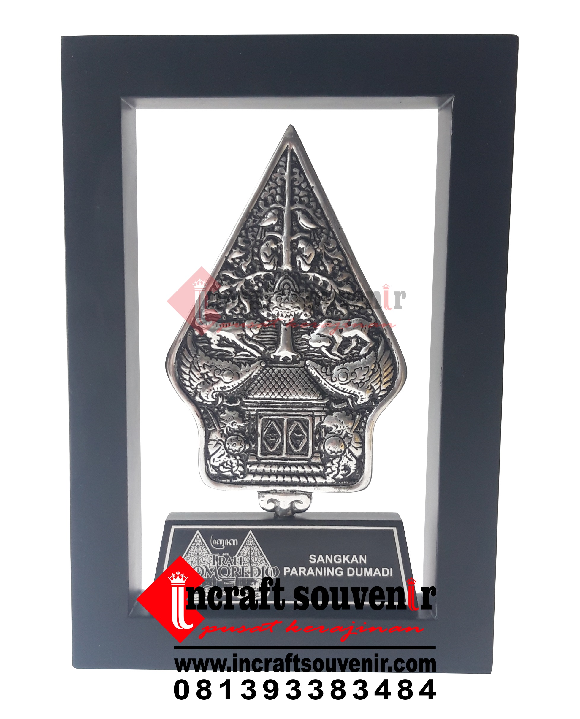 Plakat Wayang merupakan produk plakat yang eksklusif dan elegan. Plakat Wayang dengan kombinasi variasi logam menjadikan Plakat Wayang banyak sekali diminati baik instansi pemerintah, BUMN, Universitas dan juga perusahaan – perusahaan swasta. Produk Plakat Wayang ini terkenal dengan nilai kemewahanya dengan kombinasi dan dilengkapi dengan kotak bludru / batik menambah nilai eksklusufitas Plakat Wayang ini. Harga Plakat Wayang sendiri bervariasi tergantung dari kesulitan juga ukuranya.