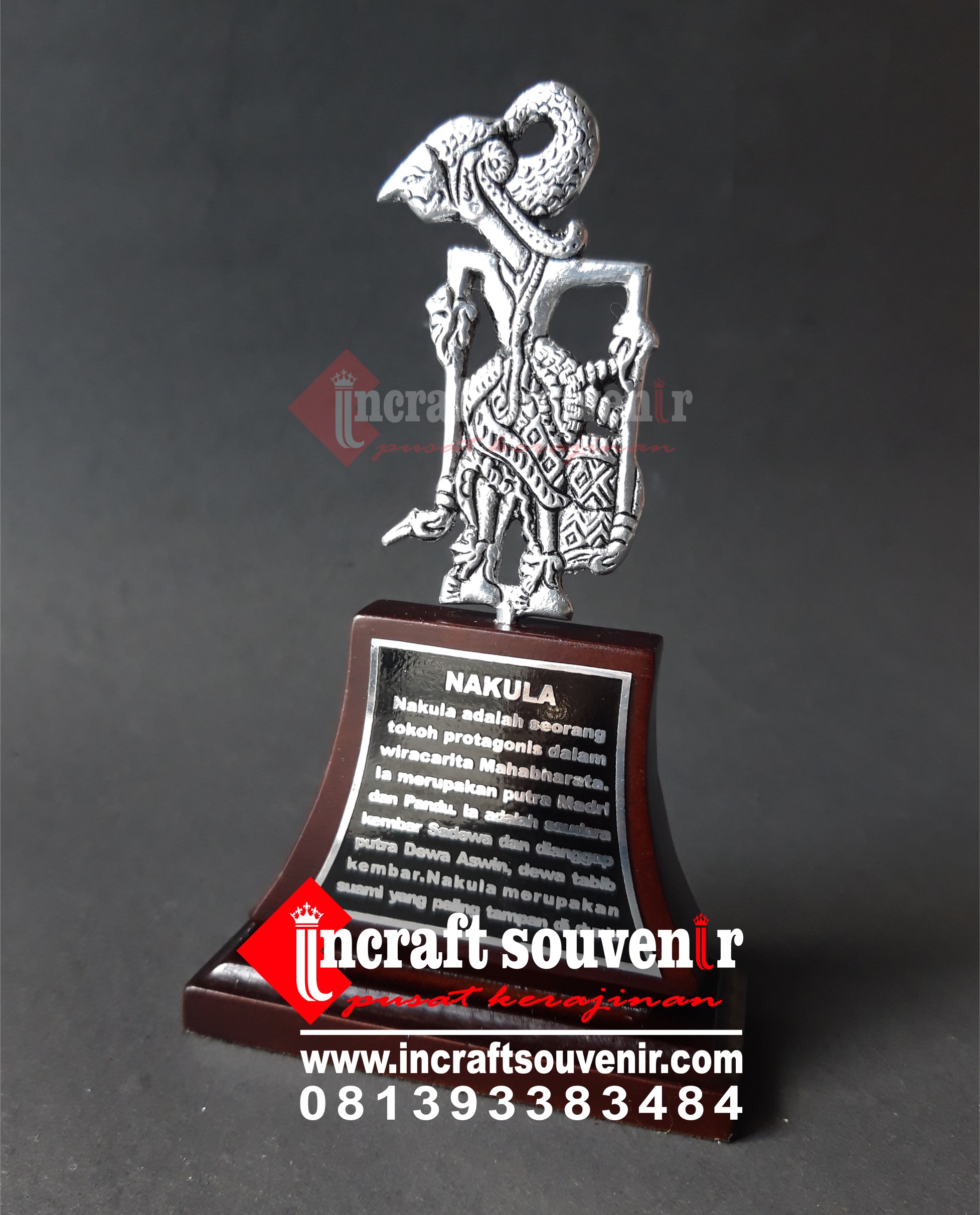 Plakat Wayang merupakan produk plakat yang eksklusif dan elegan. Plakat Wayang dengan kombinasi variasi logam menjadikan Plakat Wayang banyak sekali diminati baik instansi pemerintah, BUMN, Universitas dan juga perusahaan – perusahaan swasta. Produk Plakat Wayang ini terkenal dengan nilai kemewahanya dengan kombinasi dan dilengkapi dengan kotak bludru / batik menambah nilai eksklusufitas Plakat Wayang ini. Harga Plakat Wayang sendiri bervariasi tergantung dari kesulitan juga ukuranya.