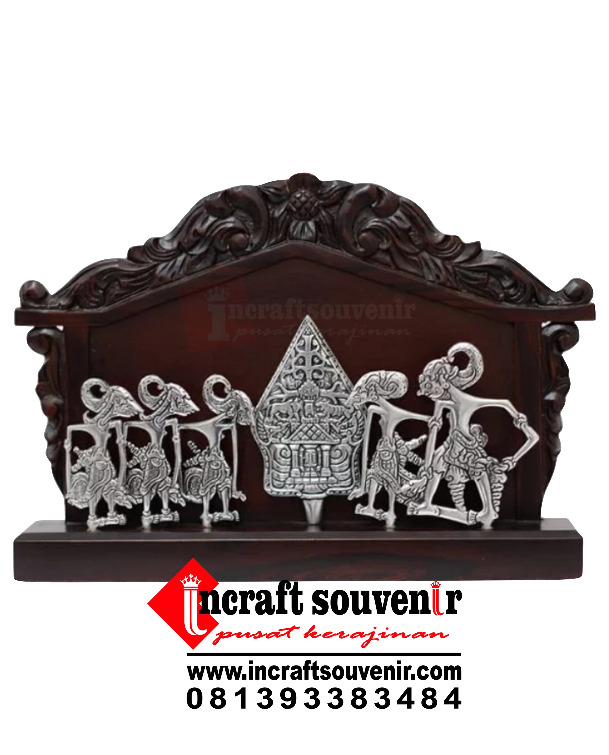 Plakat Wayang merupakan produk plakat yang eksklusif dan elegan. Plakat Wayang dengan kombinasi variasi logam menjadikan Plakat Wayang banyak sekali diminati baik instansi pemerintah, BUMN, Universitas dan juga perusahaan – perusahaan swasta. Produk Plakat Wayang ini terkenal dengan nilai kemewahanya dengan kombinasi dan dilengkapi dengan kotak bludru / batik menambah nilai eksklusufitas Plakat Wayang ini. Harga Plakat Wayang sendiri bervariasi tergantung dari kesulitan juga ukuranya.